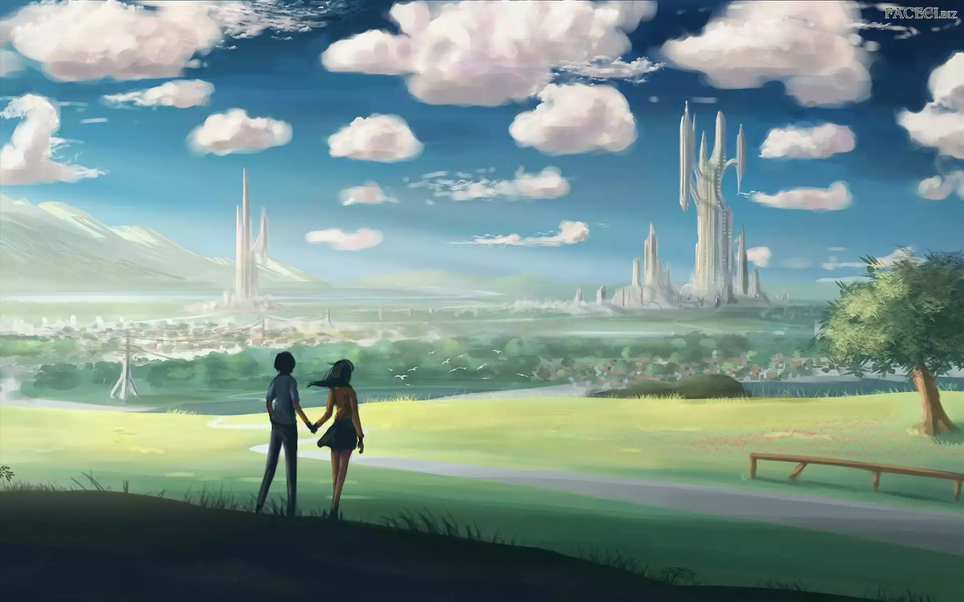 Drzewo, Chmury, Dziewczyna, Chłopak, Zakochani - faceci.biz